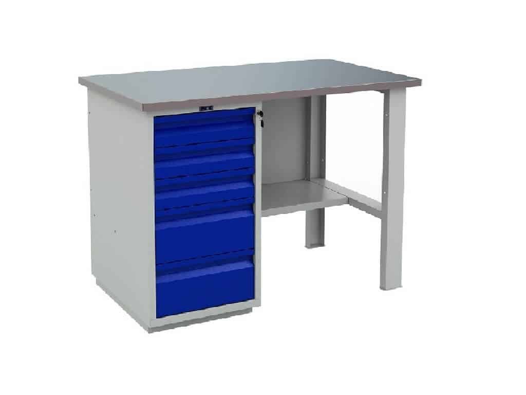 - Darbo stalas dažomas milteliniais dažais, rėmo spalva – pilka (RAL 7038)
