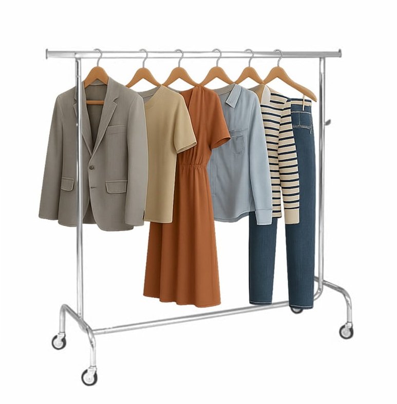 Skirtos statyti parduotuvės salės centre. Naudojomas drabužių, sporto prekių parduotuvėse.