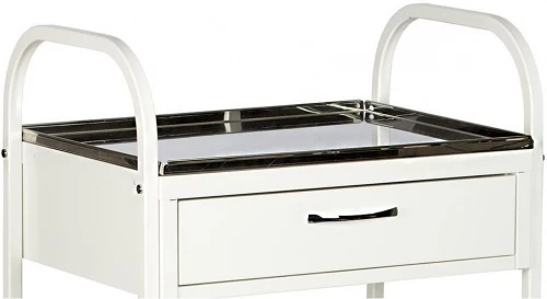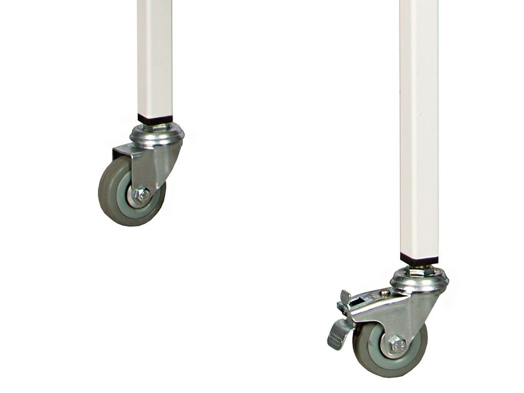 Staliukas komplektuojamas su dviem nerūdijančio plieno lentynomis, kurios puikiai tinka medicinos instrumentams, vaistams ar procedūrų priemonėms laikyti. Lentynos lengvai valomos, atsparios drėgmei bei cheminėms medžiagoms, todėl puikiai tinka profesionaliai medicinos aplinkai.
