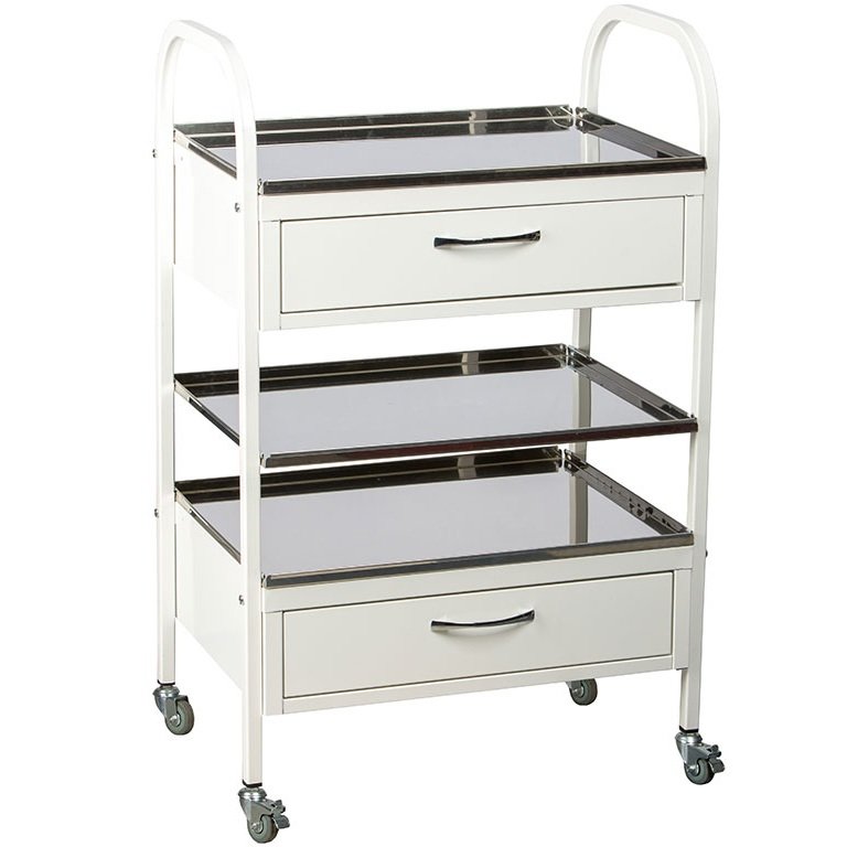 Nerūdijančio plieno lentynos ir milteliniu būdu dažytas rėmas yra atsparūs reguliariam valymui bei dezinfekcijai. Tai itin svarbu medicinos aplinkoje, kur būtina palaikyti aukštus higienos standartus bei užtikrinti švarią darbo vietą. Lygūs paviršiai leidžia greitai pašalinti nešvarumus.