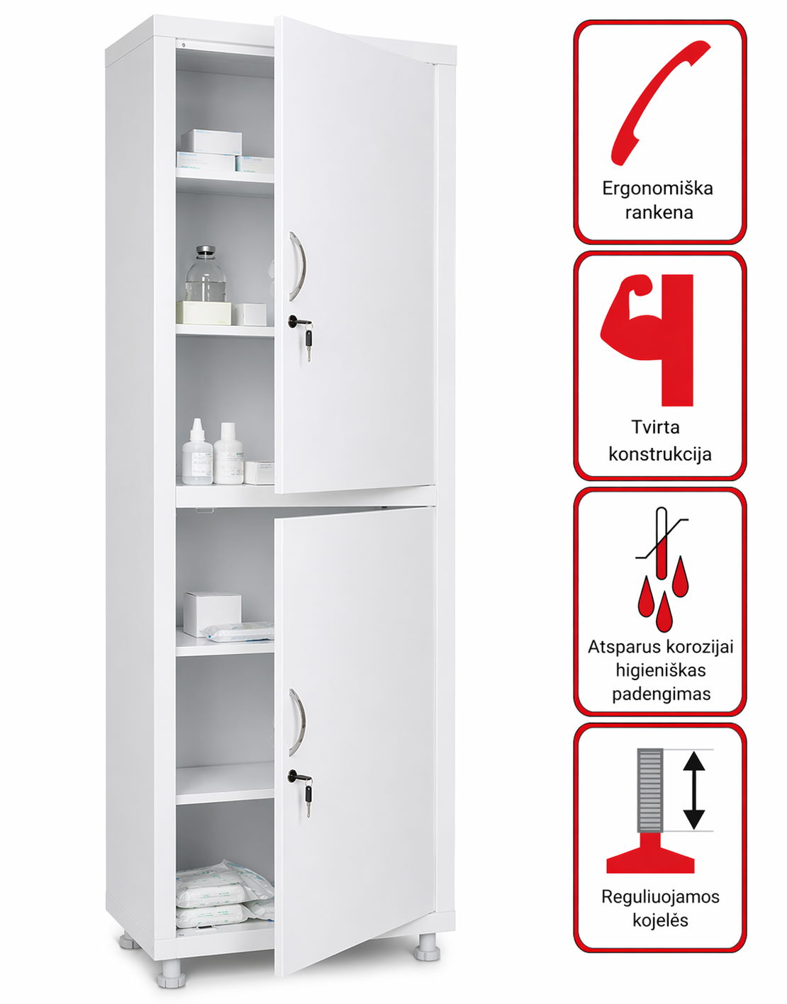 • Skirta vaistams, instrumentams, pacientų dokumentams, pacientų kortelėms medicinos įstaigose ir organizacijose saugoti