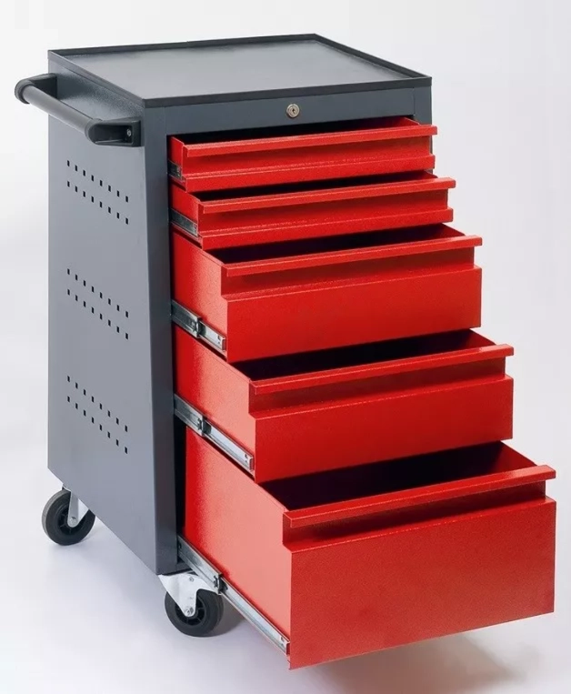 Įrankių vežimėlis sumontuotas ant tvirtų ratukų, todėl jį galima lengvai perkelti į skirtingas darbo vietas. Tai ypač patogu dirbtuvėse ar servisuose, kur įrankiai naudojami įvairiose darbo zonose.