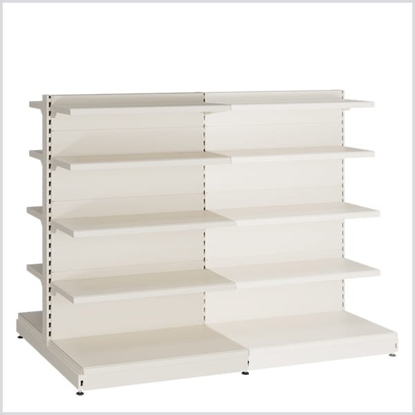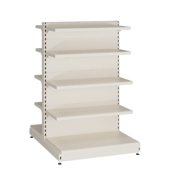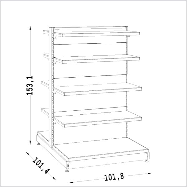 Dvipusės prekybinės lentynos naudojamos prekių eksponavimui parduotuvės centre. Bendra apkrova iki 200 kg. ( lentynos iki 30 kg. ). Galima jungti į neriboto pločio junginius