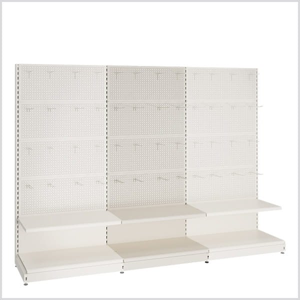 Ši prekybinė lentyna populiarus sprendimas prekybos centruose, vaistinėse ir pan. Balta lentynos spalva klientams leidžia atkreipti dėmesį į išvaizdžias produktų pakuotes. Lentyna lengvai pastatoma, su reguliuojamomis atramėlėmis. Galima jungti į neriboto pločio junginius. Bendra galima apkrova iki 380 kg.