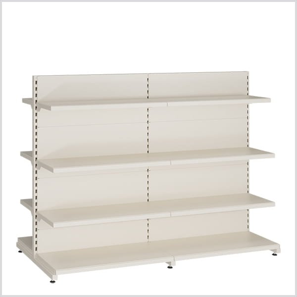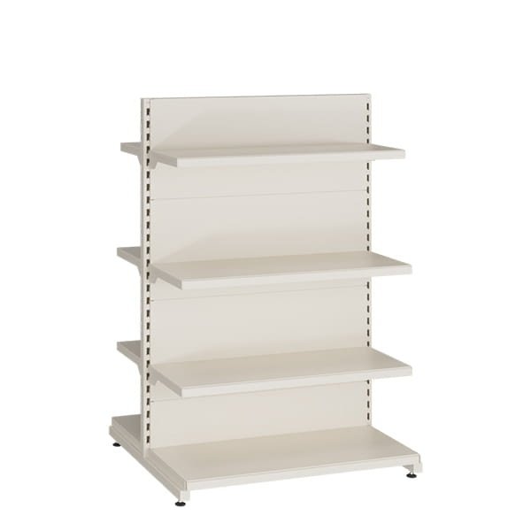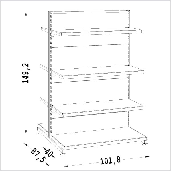 Dvipusės prekybinės lentynos naudojamos prekių eksponavimui parduotuvės centre. Bendra apkrova iki 200 kg. ( lentynos iki 30 kg. ). Galima jungti į neriboto pločio junginius.